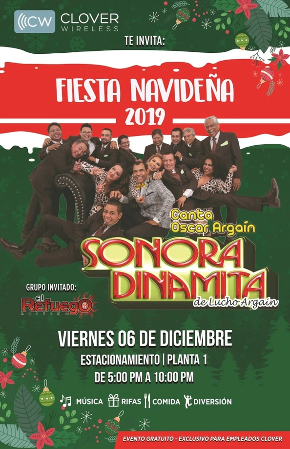 Fiesta navideña Clover Wireless con Sonora Dinamita 2019